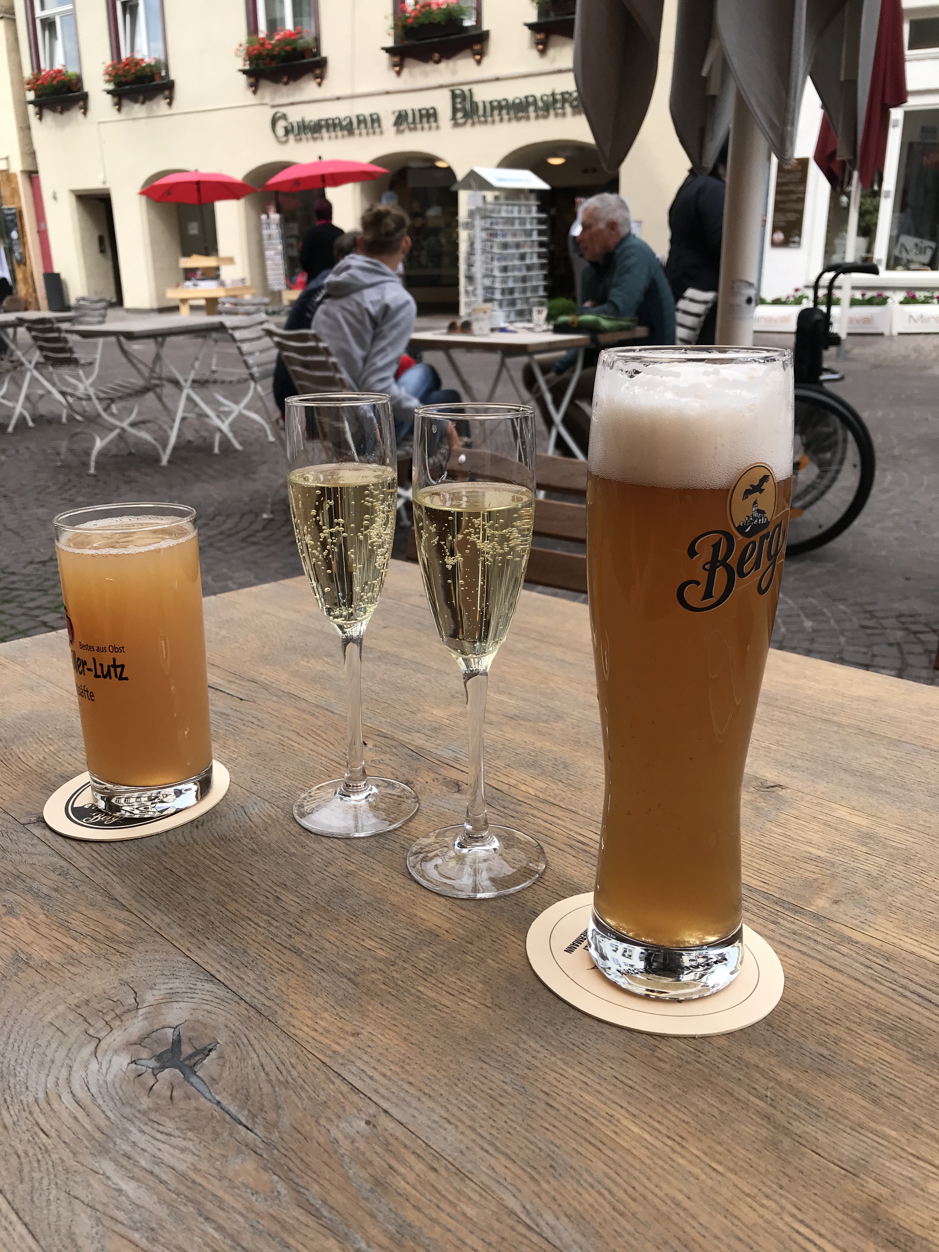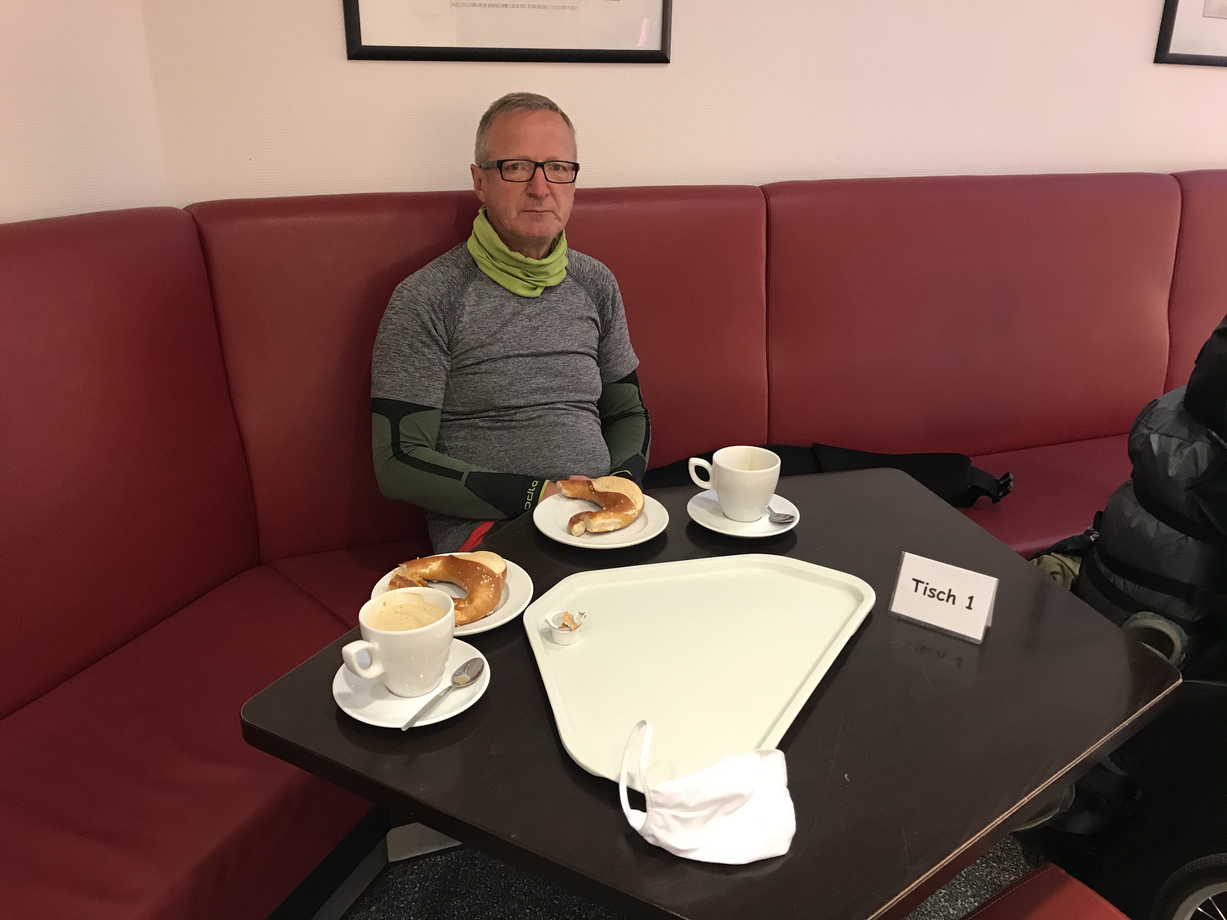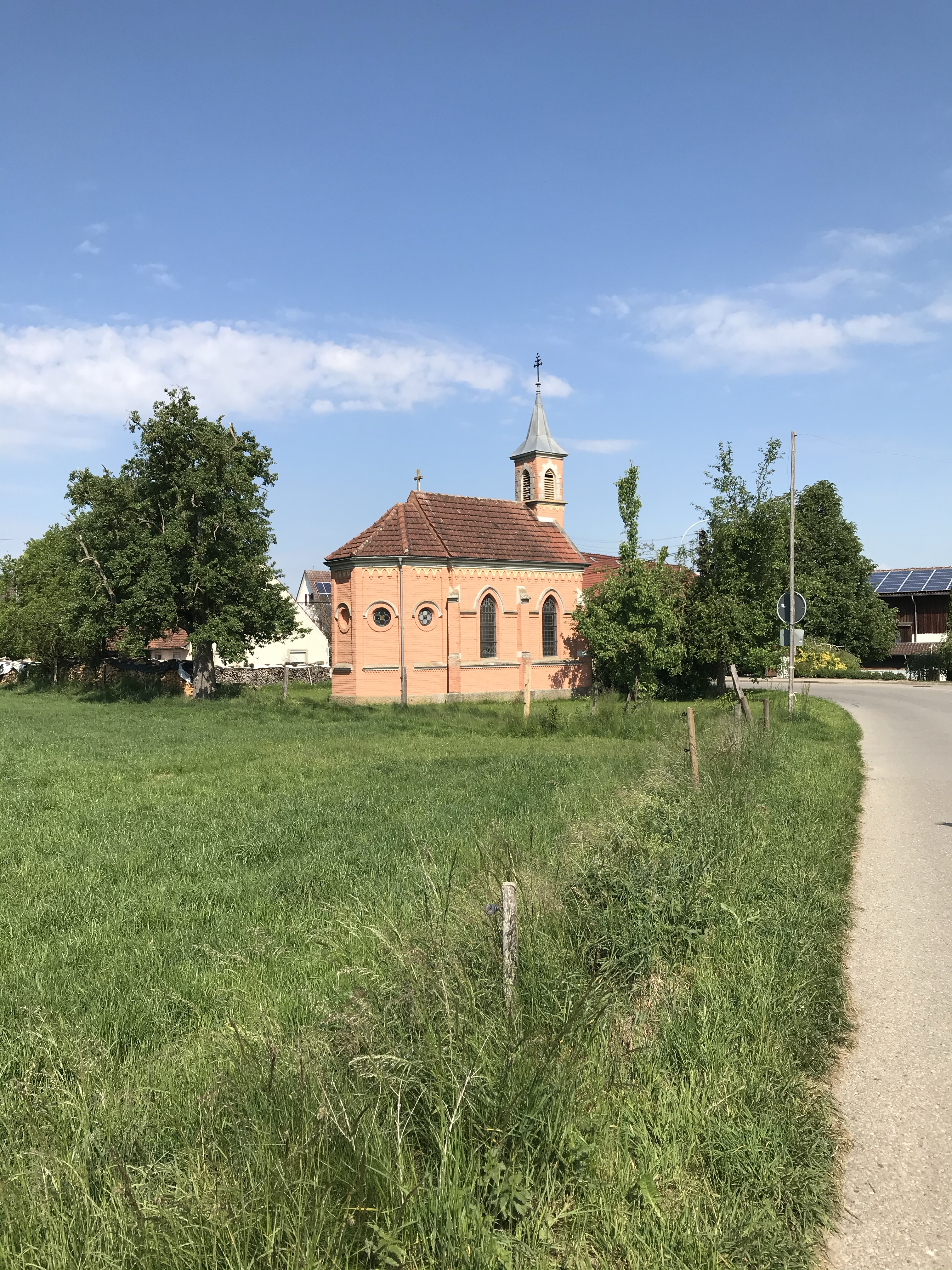 Der Hausmeister vom Schloss war ja sehr freundlich und hat uns einfach so dort zelten lassen. Heute morgen nach 15 km Richtung Bad Schussenried hält ein Auto an und begrüsst uns. Es war der Hausmeister, der überrascht ist, wie weit wir schon sind. Einfach toll. Auf unserer weiteren Reise werden wir mehrfach angesprochen. Pilgerreise oder so ähnlich. Wir sagen nein einfach laufen. Eigentlich wollten wir bis Bad Schussenried. Aber in Steinhausen gibt es einen Campingplatz, juhu. Aus der Vorfrerude ist leider nichts geblieben da die Campingplätze für Zelter erst ab morgen öffnen dürfen. Kaka! Beim Durchlaufen kommen wir an einen schönen Gasthof vorbei. Durst ist da und Fragen kostet nichts. Dürfen wir eine Nacht zelten. Chef sagt das geht in Ordnung. Also Zelt aufbauen Bierchen trinken und ab 17.30 Uhr gibt es Abendessen. Perfekt. Insgesamt waren es heute doch wieder 36 km. Wetter war gut, ein paar Tropfen und ein Gewitter voraus hat uns aber nicht getroffen. Nachfolgend wieder ein paar Impressionen vom Tag. Elisabeth nötigt mich noch ein Bier zu holen. Was willst machen wenn die Bierliesl am 38. Hochzeitstag ein Bier möchtet? Also Bier holen und im Zelt mit irischer Volksmusik trinken. Das ist der Grund warum ich mit dieser Frau 38 Jahre glücklich verheiratet bin.