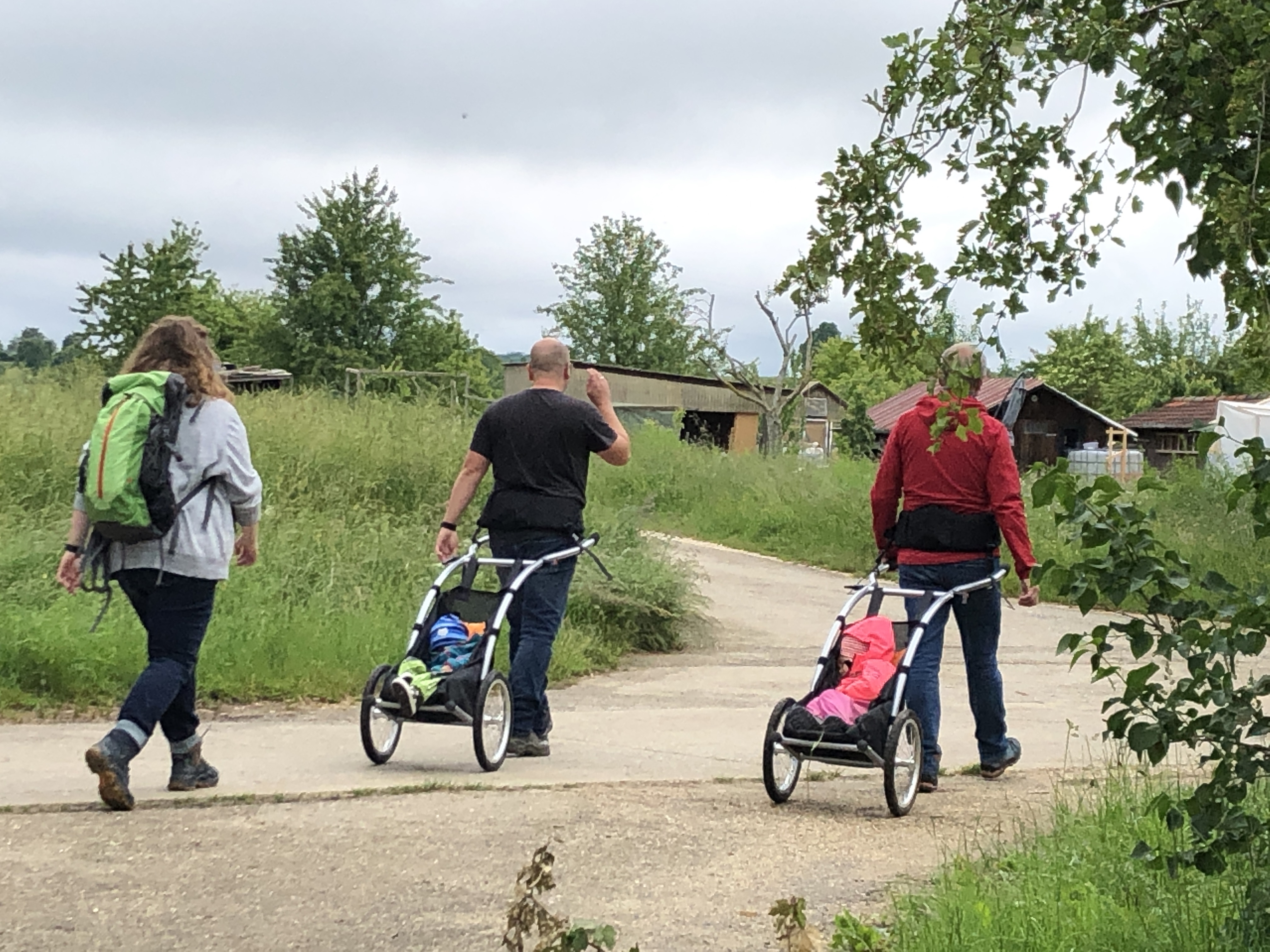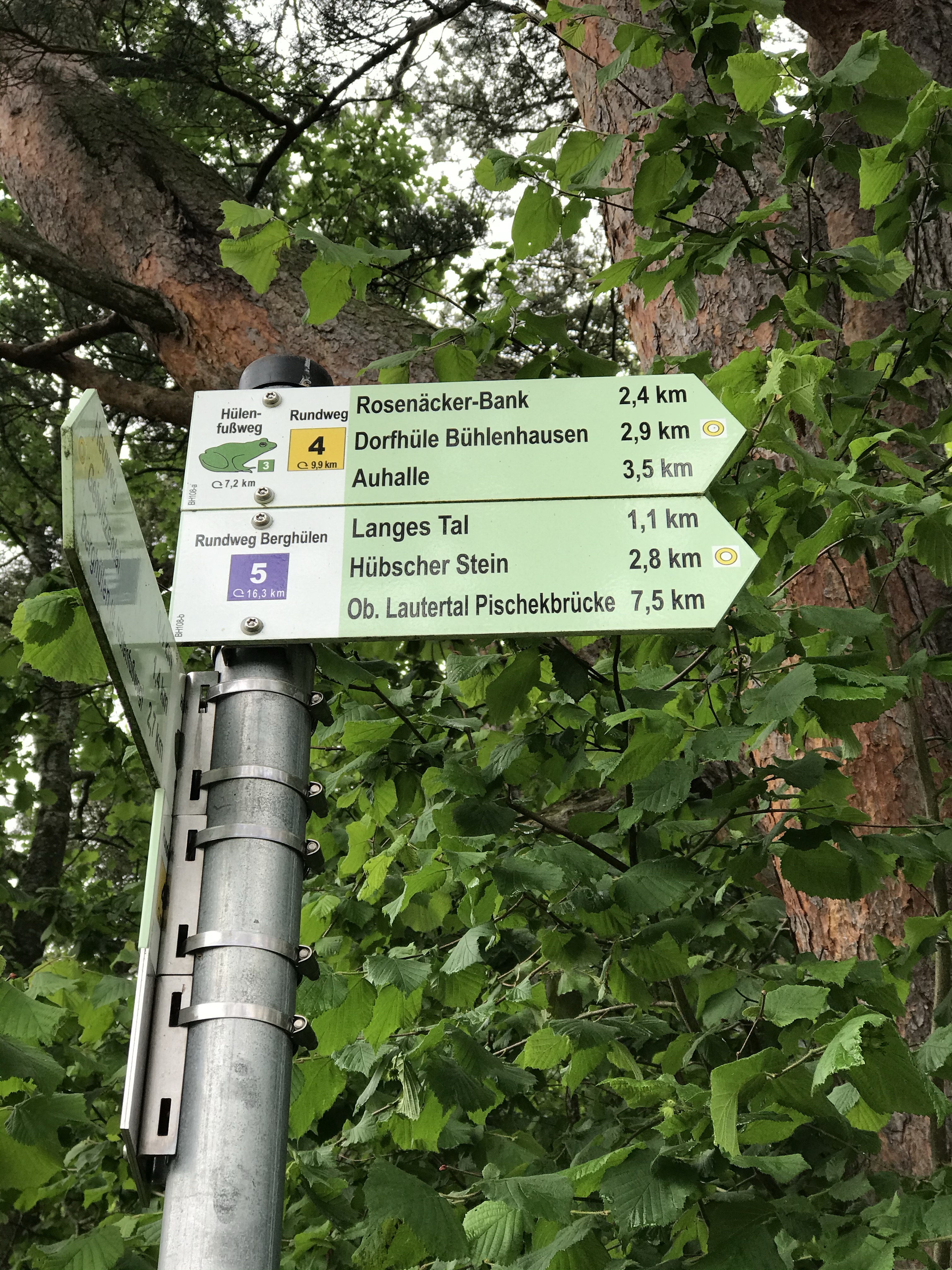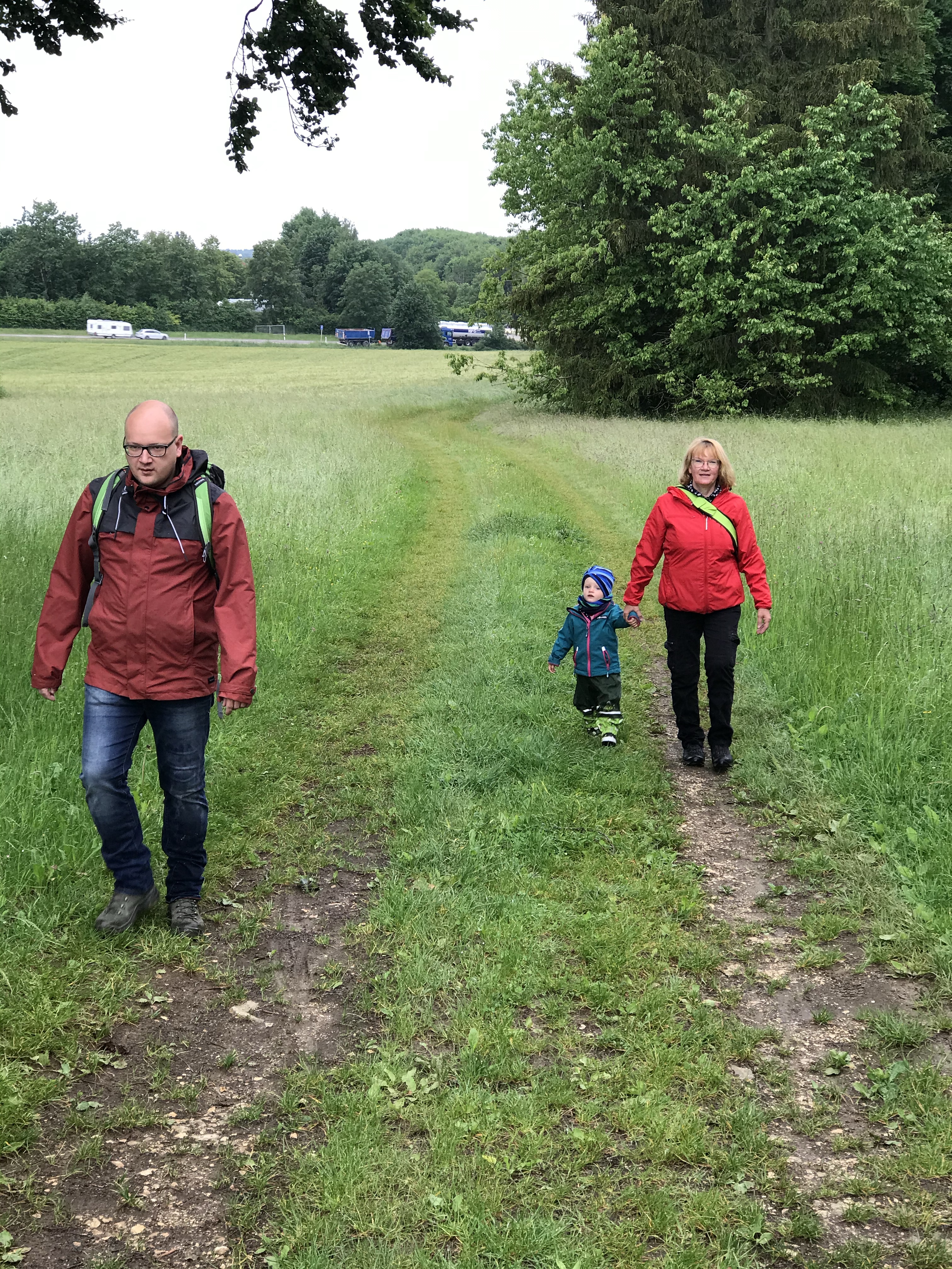 Nach einer heißen Dusche und einem guten Kaffee machen wir uns auf eine kleine Wanderung zu machen. Benni führt uns. Schon an der ersten Ecke wird gemeutert das das Gras auf dem Weg zu nass und zu hoch ist. Also sofort umplanen. Später kommen wir an einer Weggabelung vorbei und es wird ein“Froschweg“ angezeigt. Den laufen wir dann auch. Nach knapp 10 km sind wir kurz vor 12.00 Uhr wieder auf dem Campingplatz. Nachfolgend ein paar Bildeindrücke der Wanderung.