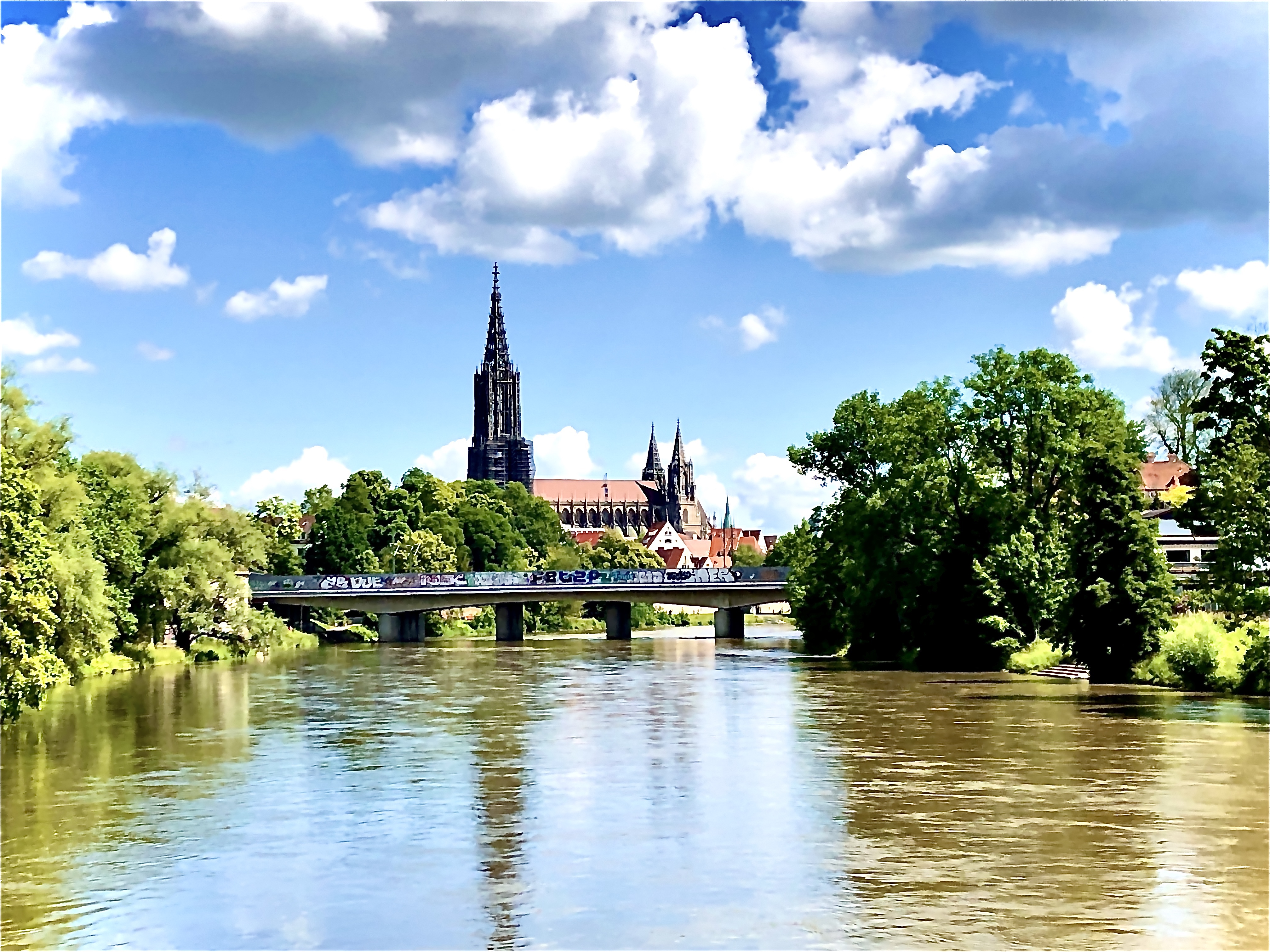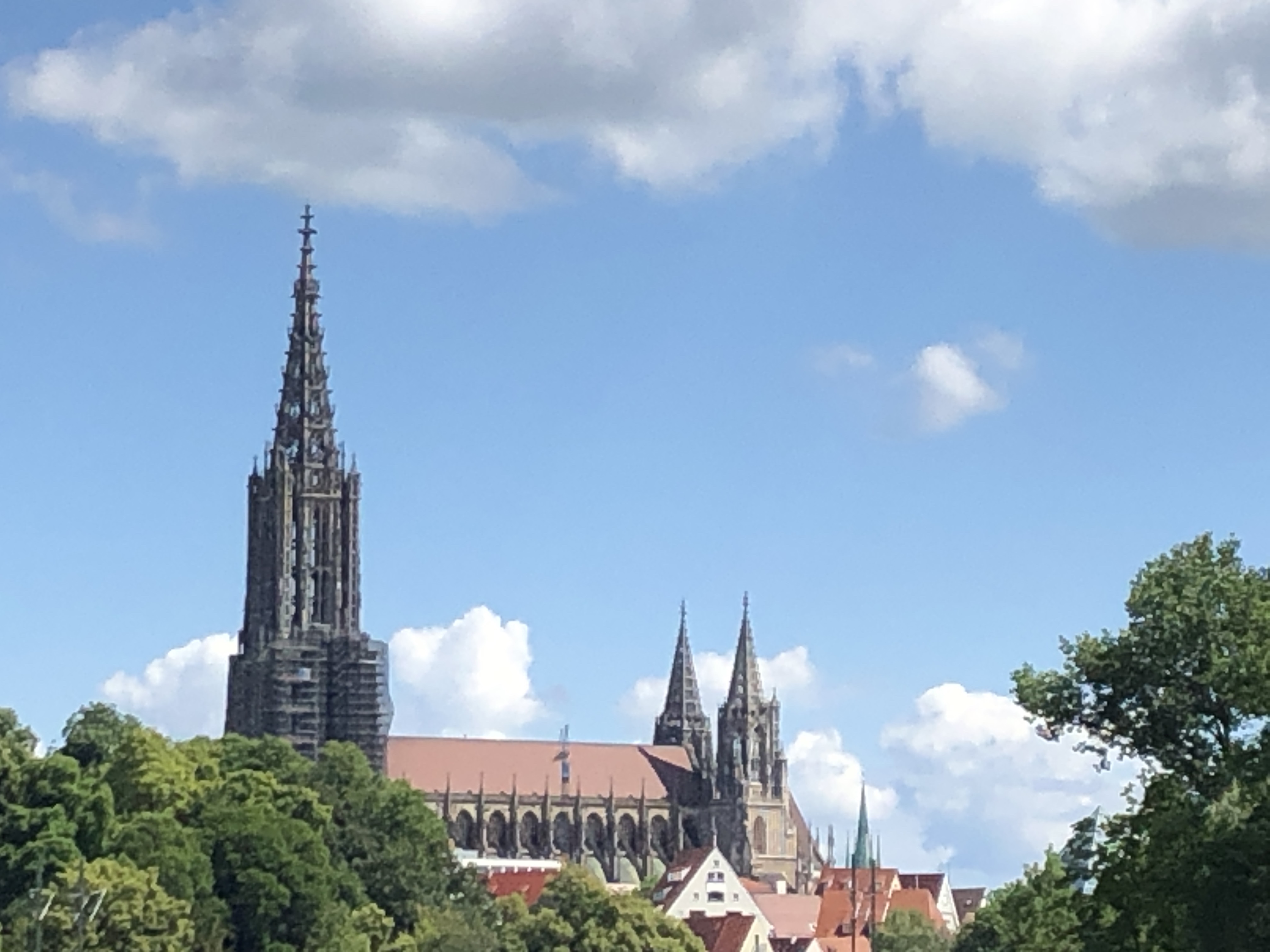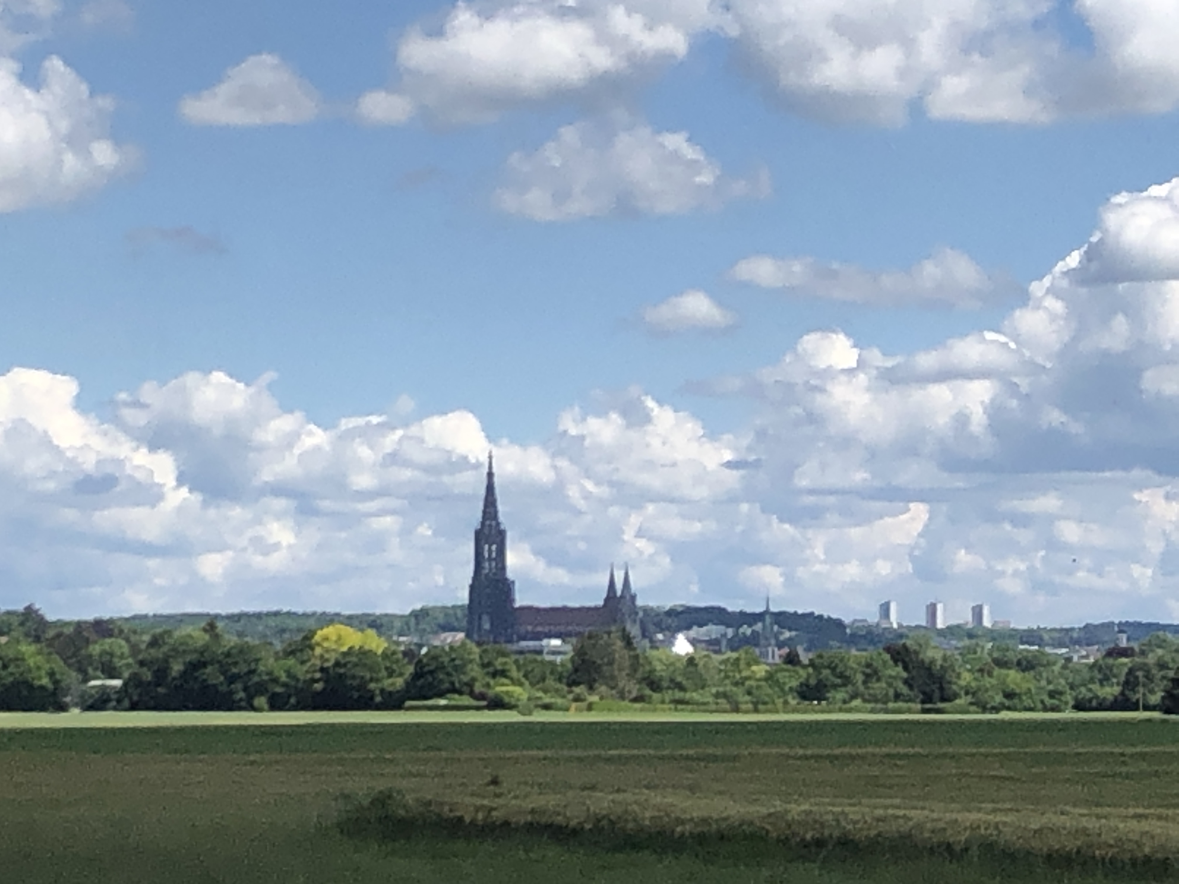 Wetter ist prima. Zum weiteren Ausdauertraining laufen wir nach dem Frühstück von Senden aus über Gerlenhofen nach Ulm. Über die Innenstadt vorbei am Ulmer Münster runter an die Donau. Vorbei am DLRG der Donau über den Illerradweg zurück nach Senden. Schöne Tour mit teilweisen tollen Blcik aus der Ferne auf das Ulmer Münster. Höchster Kirchturm der Welt mit 161,53 Meter. Fertigstellung war 1890.