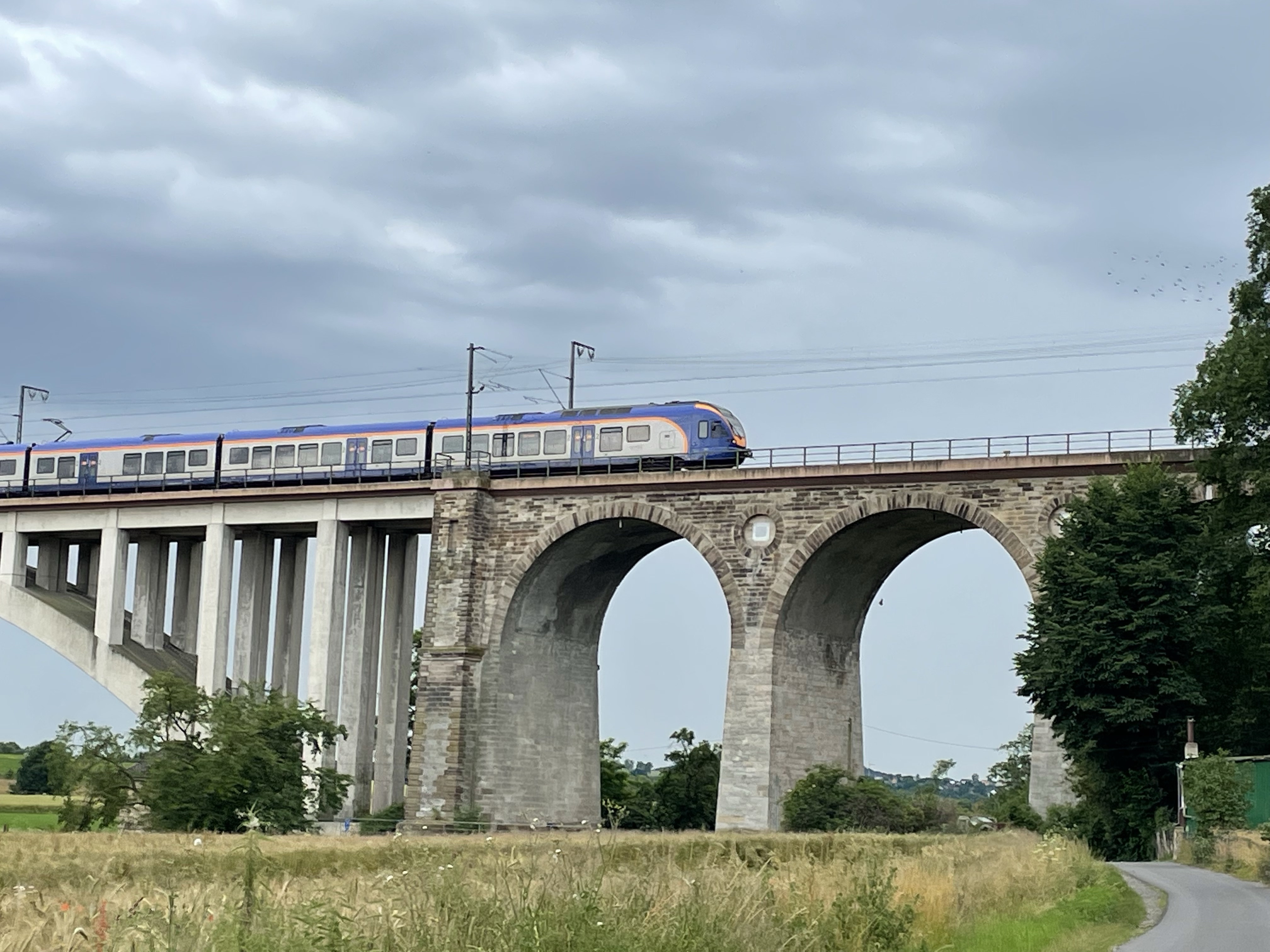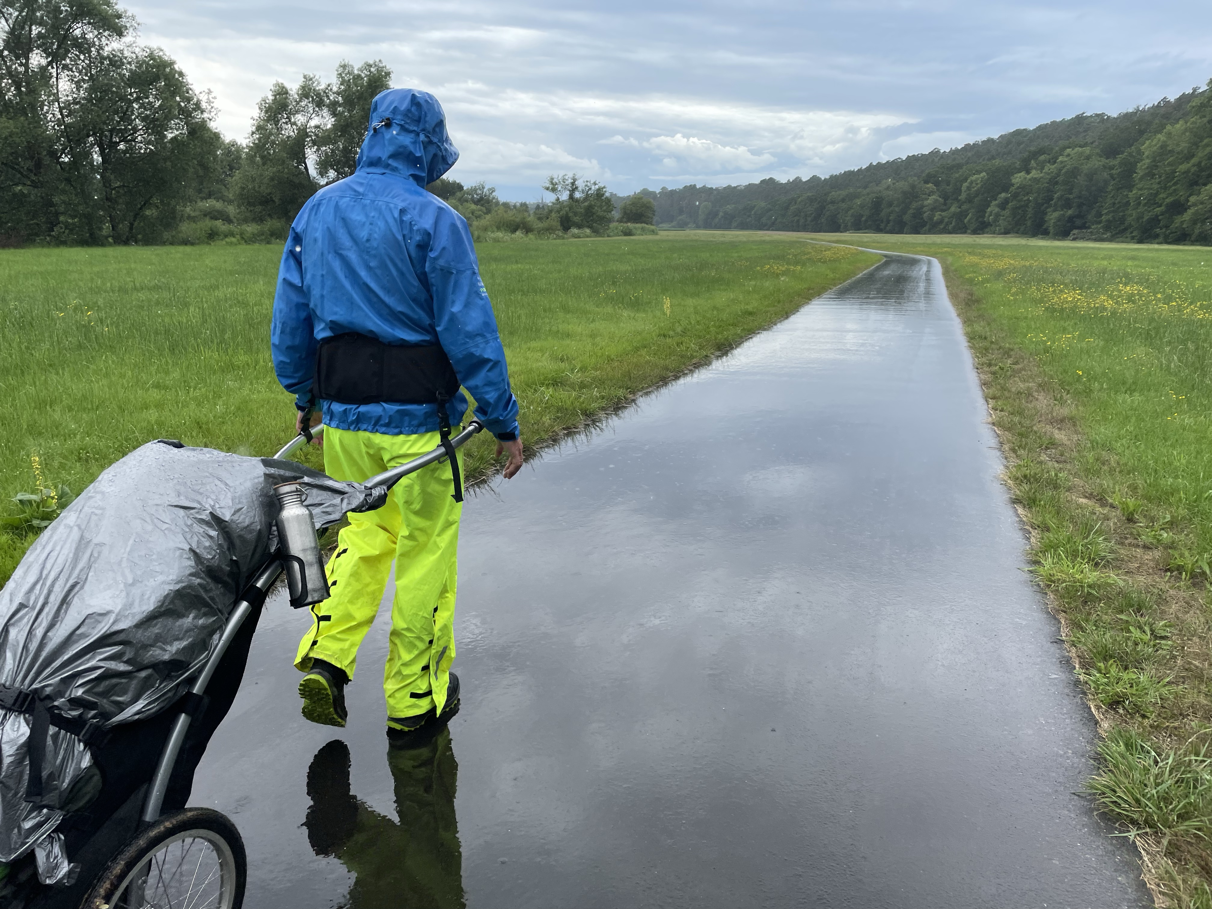 Wie zu vermuten ist geht es dann steil wieder zur Eder runter, dafür geht der Weg dann eben weiter. Als wir an einer Eisenbahnbrücke vorbeikommen stellen wir uns gleich mal unter um unsere Regenkleidung anzuziehen. Der Himmel hat sich mittlerweile verfinstert und es beginnt zu regnen. Danach gießt es aus Kübeln.