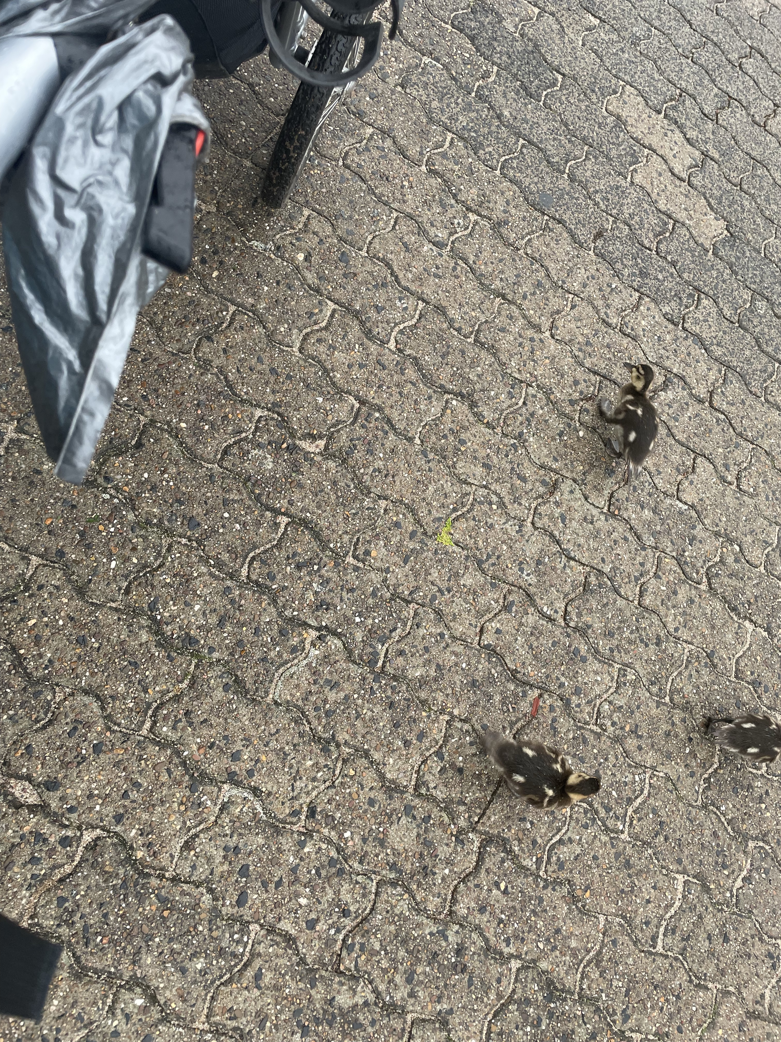 Eine Entenfamilie mit sechs kleinen Enten verabschiedet sich noch von uns, sie wuseln um unsere Füße und um die Räder der Wheelies. 🙂 Wir müssen erst abwarten bevor wir gehen können. Wir starten dann um 07.39 Uhr nachdem uns ein Zeltnachbar noch ausgefragt hat über unsere Reise.