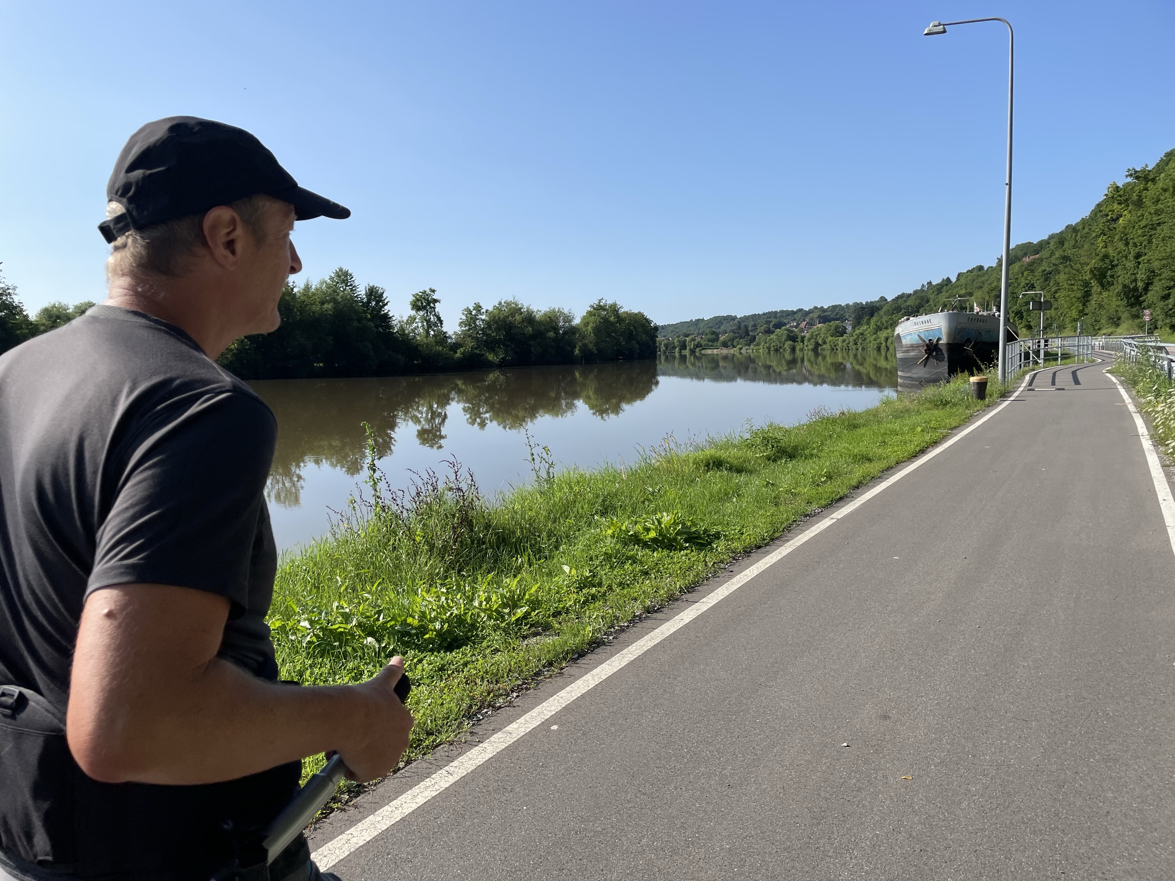 Kurz gehen wir noch am Rande vom Neckar und dann immer den Radweg entlang. Zuerst ist alles wunderbar, aber nach und nach wachen wohl die Menschen auf und es tummeln sich immer mehr mit ihren Fahrrädern auf diesen Weg.