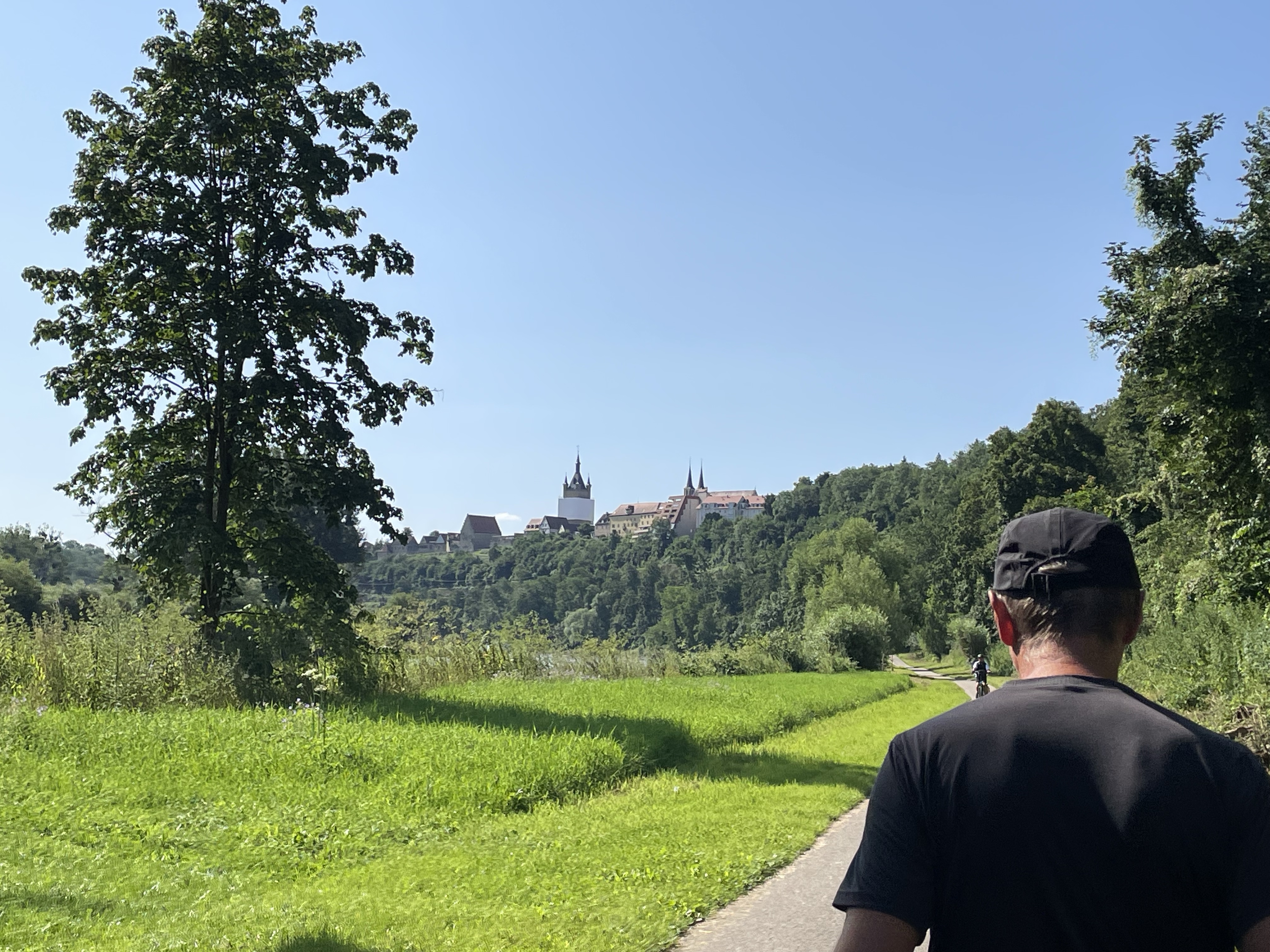 Bald müssen wir dann vom Neckarufer auf eine anderen Weg auf dem wir schon bald nach Neckarsulm „einlaufen“. Hier ist wohl dieses Wochenende ein großes Fest, die Stadt feiert ihren 1200er.