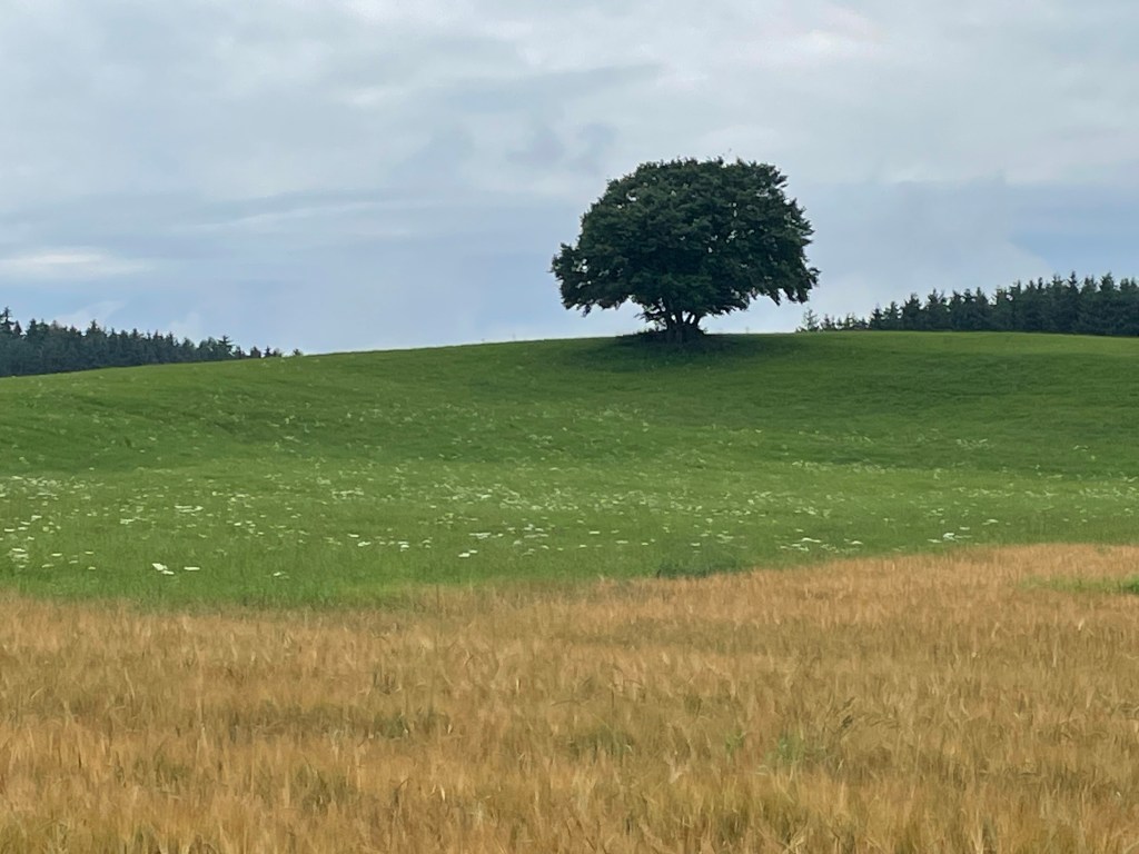 Ein Auto hält neben uns und eine völlig aufgelöste Frau fragt uns ob wir einem Walker begegnet sind. Leider nicht! Der Mann ist heute gestartet und sie hat einen Anruf von ihm verpasst und jetzt ist er nicht mehr erreichbar, außerdem hatte er gestern Kreislaufprobleme. Wir versprechen die Augen offen zu halten, was wir auch tun, aber wir sehen niemanden.