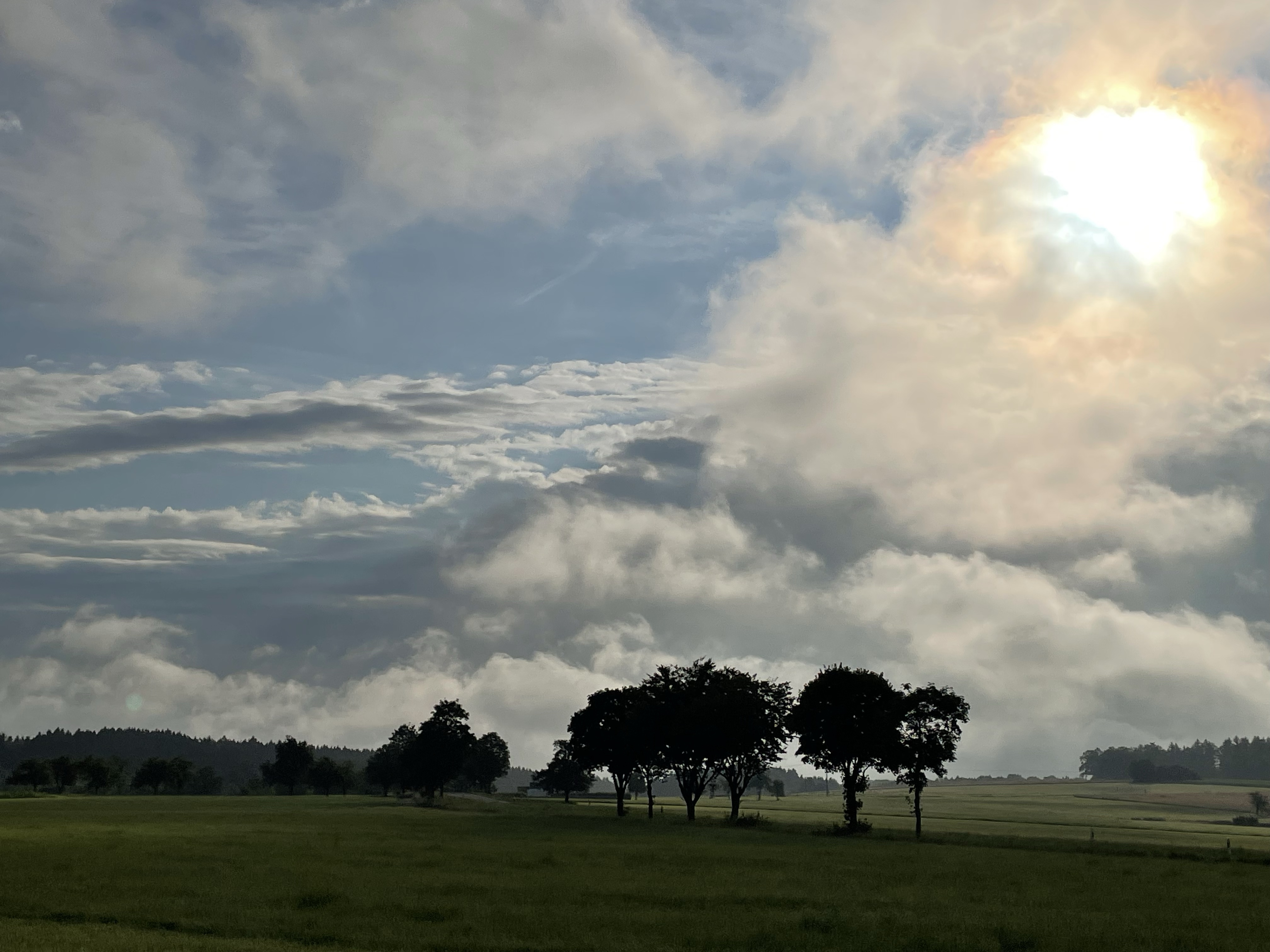 Wir starten also kurz nach 07.00 Uhr – und – die Sonne lacht jetzt. Der Aufgrund der wenigen Höhenmeter ein sehr angenehmer Weg ist. Er geht durch einige Dörfer und wir kommen bald nach Stockach. Dort kaufen wir wieder für unser Abendessen ein, genießen ein süßes Stückchen und etwas zum Trinken.
