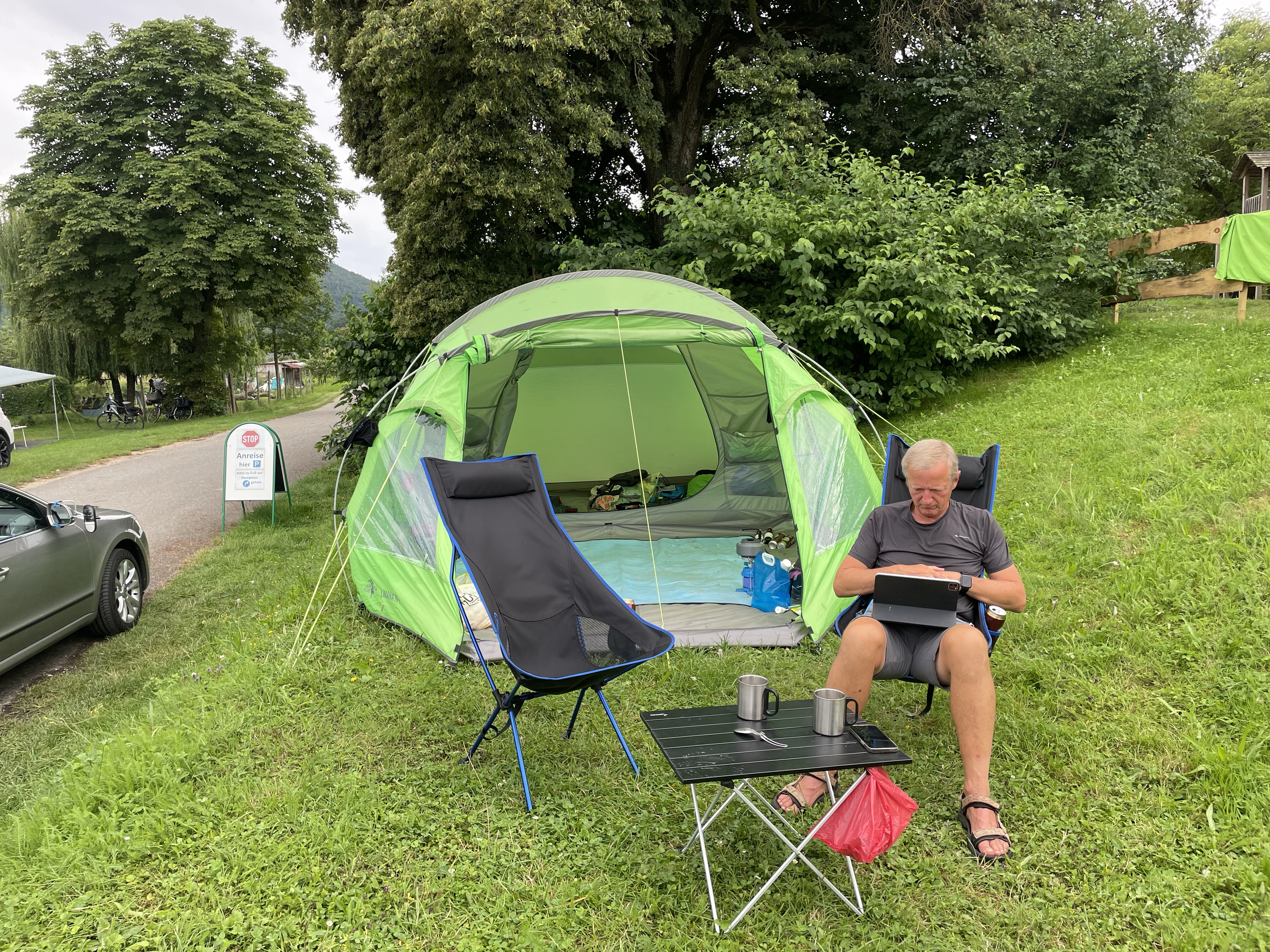 Als wir alles zusammen haben gehen wir zum Platzwart, der versprochen hat für uns so früh am Morgen da zu sein. Der Campingplatz war sehr schön mit Naturschwimmbad und der Platzwart und seine Frau sind super nett. Wir können auch noch jeder einen Kaffee genießen. Unserer ist leider ausgegangen.