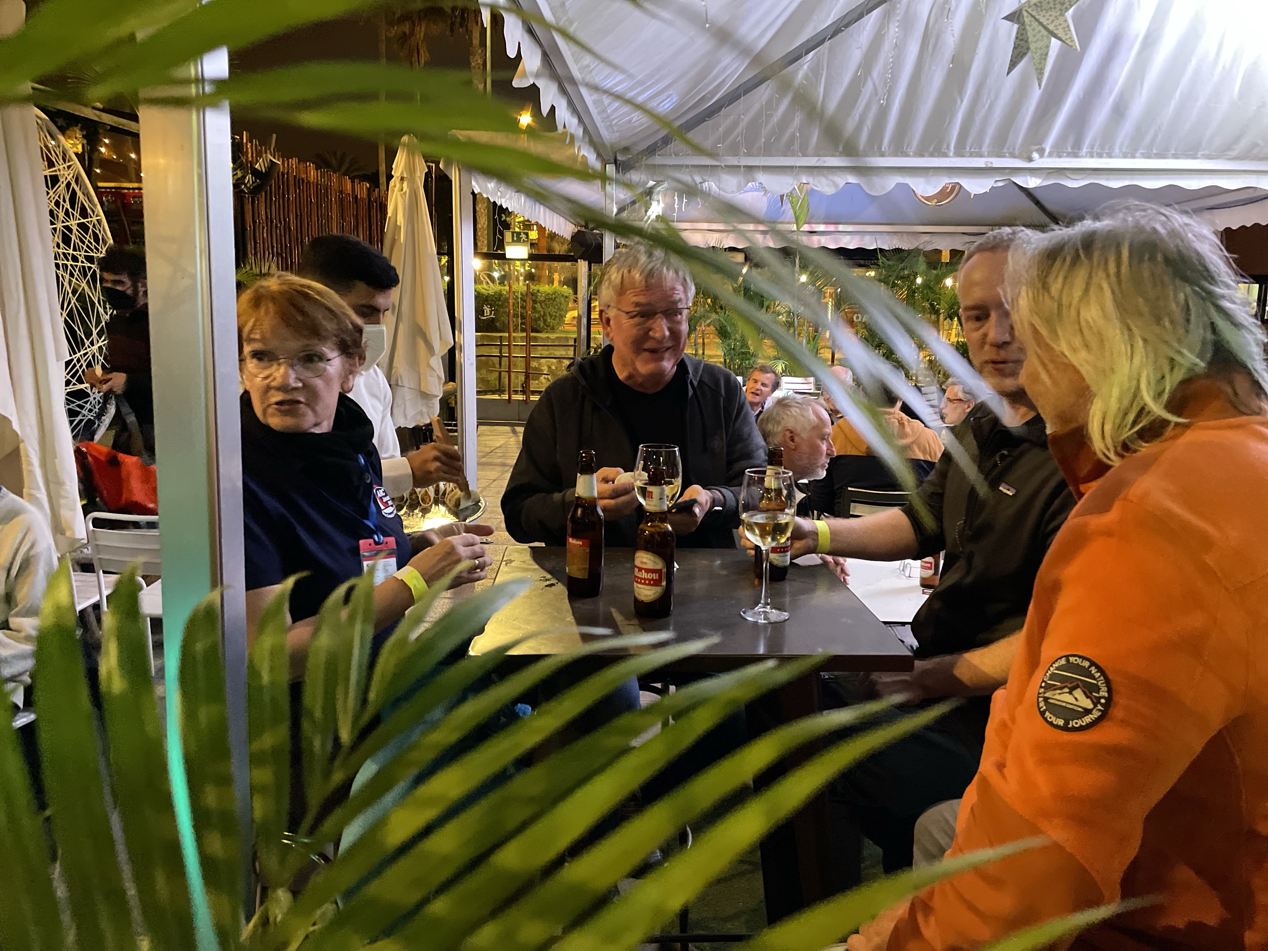 Am Abend soll eine Party von ARC um 17.00 Uhr stattfinden. Manfred möchte noch freiwillig auf eine Anlieferung von Lebensmittel warten und Hubert ist noch unterwegs um Essen für Morgen zum Kochen zu besorgen. Also gehen Frank, Thomas und Elisabeth schon einmal los, aber als wir ankommen sagt man uns dass das ganze erst um 18.30 Uhr startet. Also kehren wir zur Capriole zurück. Genau richtig: die Einkäufe werden gerade geliefert und auch Hubert ist wieder da, so können wir alle mithelfen.