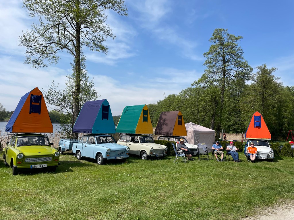 Als wir zu unserem Campingplatz ankommen, werden wir sehr herzlich empfangen und uns wir alles persönlich gezeigt, die Duschen und Toiletten, der Abwaschraum und der Stellplatz am See für Camper, auf dem einige Trabis mit Dachzelten stehen, echt toll. Baden kann man hier auch.