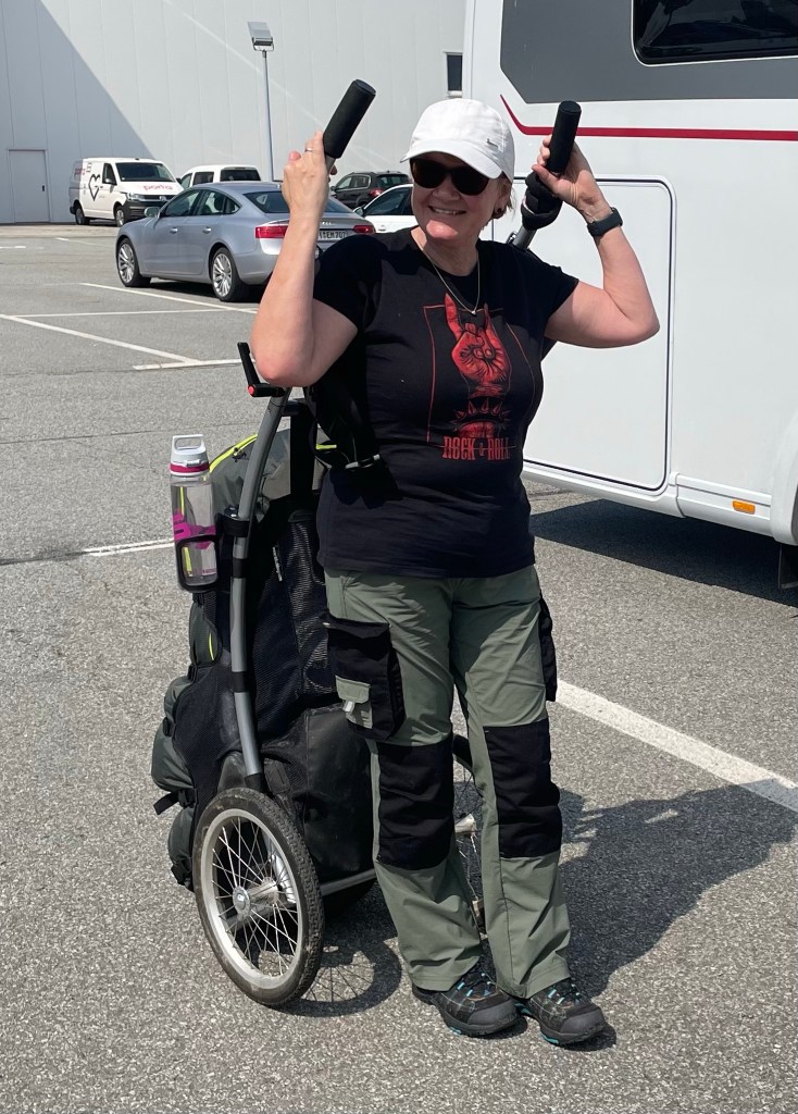 Um 10.30 sind wir dann in Görlitz angekommen. Parkplatz vor dem Baumarkt. Wir bauen unsere Wheelies zusammen schnüren die Schuhe, verabschieden uns von Enkeln und Kinder und marschieren los.