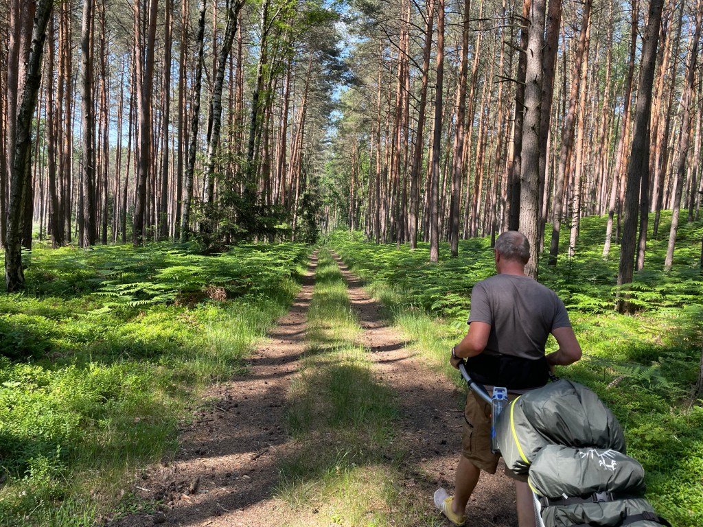 Nach einer erholsamen Nacht mit Froschkonzert, starten wir so gegen 08.30 Uhr. Zuerst gehen wir durch sehr schöne lichtdurchfluteten Kiefernwälder bis Komot uns mal wieder durch mannshohes Gras laufen lässt. wir scheuchen sehr viele „Moskitos“ auf und werden gierig angezapft.